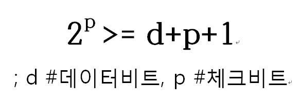예를 들어 데이터 비트의 길이가 8일 때, 위 수식을 만족하는 p의 최소값이 4이므로 최소 4개의 패리티 비트가 필요하다.